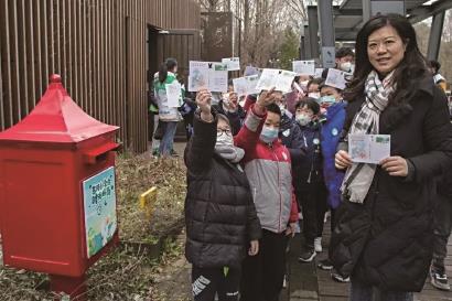 作为苏河小泾泠志愿者骨干之一,吴翊豪同学为现场的苏河小泾泠们作题为“共饮一渠水,爱护家乡河”宣讲,分享他多次参与苏河小泾泠活动后对水的认识、对水环境保护的理解,以及在新泾水脉保护中所思所获。苏河小泾泠们认真听讲,踊跃发言,并将他们的奇思妙语写入明信片。在苏河小泾泠时光邮筒前,区文明办志愿服务科老师为苏河小泾泠们寄出这份写给未来的明信片,留下苏河小泾泠们美好的期望,也郑重作出对水环境保护的一份承诺。