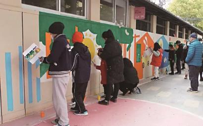 人民城市人民建,在暖暖睦邻巷的更新改造过程中,新泾镇积极践行全过程人民民主,听民声聚民智。据悉,为了扮靓停车棚,新泾镇此前通过“童绘征集卡”向社区孩子们发出邀请,请孩子们画下身边亲爱的邻居、写下给邻居的暖心话,最终收到了35份作品,有慈祥和善的老奶奶、有高大挺拔的香樟树、有憨态可掬的橘猫……这些画作经由设计师二次创作,形成了主题鲜明的巨幅彩绘。当天,小朋友们和家长一起在围墙上画下了他们身边亲爱的邻居,共同将停车棚外墙变身成为凝聚睦邻巷共同生活记忆的艺术景观墙。