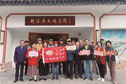 活动现场暖意融融,优抚对象们手持“生日快乐”“心想事成”等祝福标语,在“新泾历史忆空间”古色古香的传统门楼前笑意盈盈合影留念。红色横幅上“关爱功臣活动”的字样格外醒目,与白墙黛瓦的江南建筑相映成趣,勾勒出温情与敬意交织的画面。大家驻足参观历史展览、聆听红色故事,在“流金岁月”照片墙前追忆峥嵘往昔,在江南水乡壁画前感受时代变迁,沉浸于历史回响与当下温情的深度交融之中。
