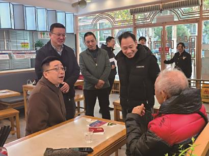 沈永兵实地走访同Xin共享客厅、社区党群服务中心、周家浜滨水公共空间,详细了解党建引领社会治理、社区长者食堂运行、本地文化保护传承等工作做法和成效。