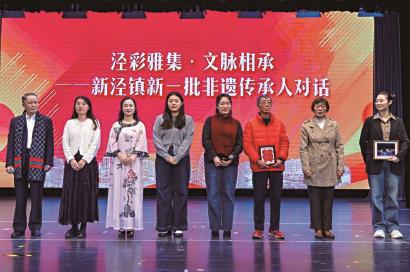 活动现场,新泾镇三大市级非遗项目——“西郊农民画”“撕纸”“江南丝竹”以及区级非遗项目——“新泾地区婚庆习俗”集中展示。新一批非遗传承申报人缪莹翡、蒋薇、严全民以及西郊农民画传承申报人邢元虎的学生胡巧云共同登台分享,现场讲述守护故事,展现非遗在社区的活态传承与创新实践。