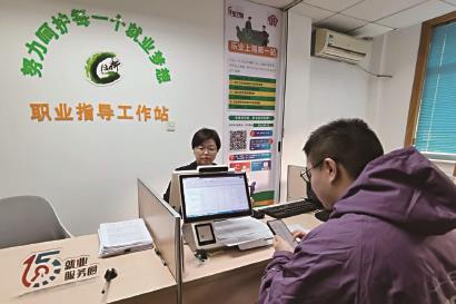 在新泾镇职业指导工作站,蒋丽萍通过双屏一体机热情接待社区求职者小瞿,不仅为其推荐最新招聘岗位、协助填写求职登记表,还引导小瞿通过扫描二维码完成心仪岗位的简历投递。接待过程中,蒋丽萍详细了解小瞿的就业需求,为其推荐“家门口15分钟就业服务站点”,帮助他就近享受便捷公共就业服务,及时获取最新就业资讯与岗位信息。