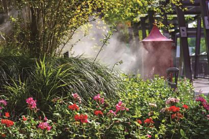 擅长修缮的崔光辉,是这个花园的“技术担当”,手持工具包,专治各种“疑难杂症”。喷淋头堵了、水泵故障了都得及时修,夏天最怕植物蔫了。有一次,花园的自动喷淋系统一个出水口堵了,他顶着大太阳蹲在地上捣鼓了半个多小时,汗衫湿透,直到水流再次顺畅地喷洒出来。崔光辉说:“夏天植物最怕旱,它们不会说话,但我们得看得见。”