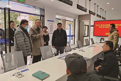 李震先后走进镇综治中心大厅、引导受理区、多元化解区、指导调度区等功能区域,认真听取关于综治中心规范化建设推进情况,详细了解“一站式”服务流程、部门入驻联动、信息化平台建设及运行质效、平安志愿者参与群防群治工作开展情况,对新泾镇在整合治理资源、创新服务模式等方面取得的成效给予肯定。