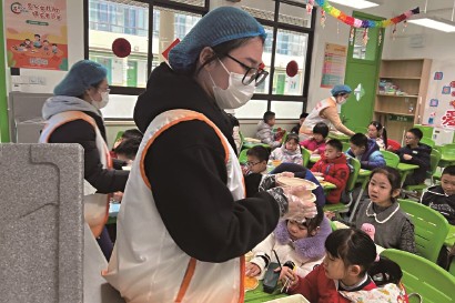 在本次寒托班中,新泾镇始终将“安全第一”的理念贯穿于每一个环节。午餐环节严格执行食品安全管理制度,确保孩子们吃得营养、吃得安心。从餐盒分发到用餐秩序,老师和志愿者全程看护,让每一餐都成为温暖又可靠的安全补给站。