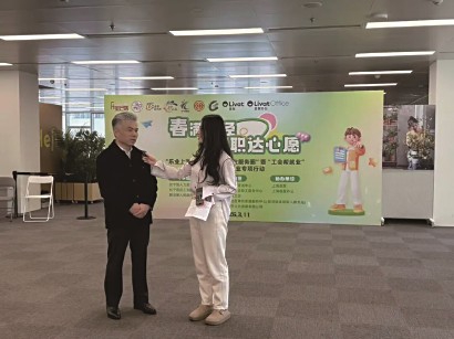 活动现场,上海市劳动模范徐兵化身“云端推荐官”,走进企业展位,实时讲解岗位优势、分享职场经验,并与线上观众互动选岗。线上线下同步发力,让未能到场的求职者也能“云求职”。