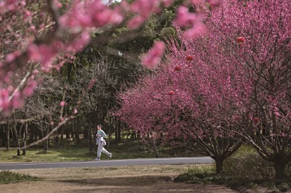 除了玉兰枝头闹,红梅也竞相绽放,花影灼灼、暗香浮动。市民或静坐花下休憩闲谈,或漫步其间轻嗅芬芳,在草木芬芳里拥抱早春的烂漫与温柔。早春的绿道也很特别,一边是春花初绽,一边是乌桕枝头冬意未消。季节在这里交替,也在这里共处。