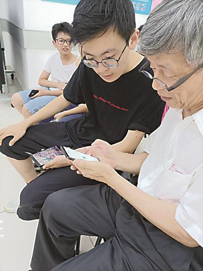 7月15日上午,考虑到老人们经常上医院,王灏和严天成两位同学便将课堂主题定为教老人如何通过微信挂号。两位小老师耐心地、手把手地给老同志讲解、演示,直到所有人都掌握到知识。