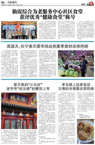 仙霞综合为老服务中心社区食堂获评优秀“健康食堂”称号