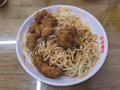 这家店的调料和浇头是主角,而面则是配角。店内工作人员介绍道,“每天的花生酱都是当天现做的,确保酱料新鲜,入口丝滑,香气更浓郁。”而浇头也是迎合了食客们的口味,比如店里的招牌糖醋小肉,糖醋汁味很浓,肉质鲜嫩,吃起来酸甜可口,十分开胃。