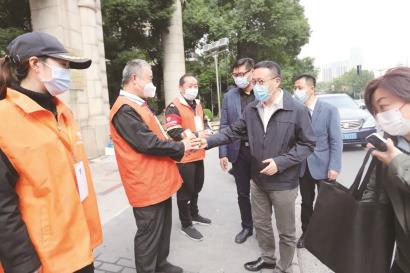 汤宏一行首先来到太阳都市居民区看望慰问了值守在点位上的平安志愿者,询问了解进博会期间社区志愿者的工作动态,肯定了社区平安志愿者的工作,并为志愿者代表送上了慰问品。