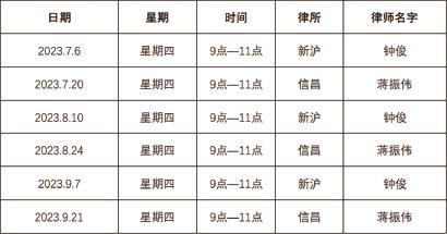周家桥“老兵法律服务工作室” 2023第三季度接待安排